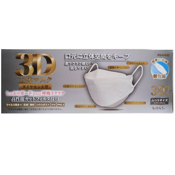3D立体マスク ダイヤモンド型 個包装 ホワイト