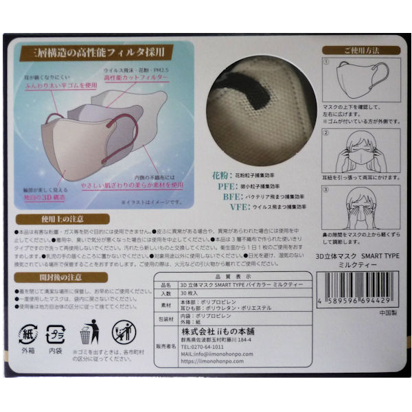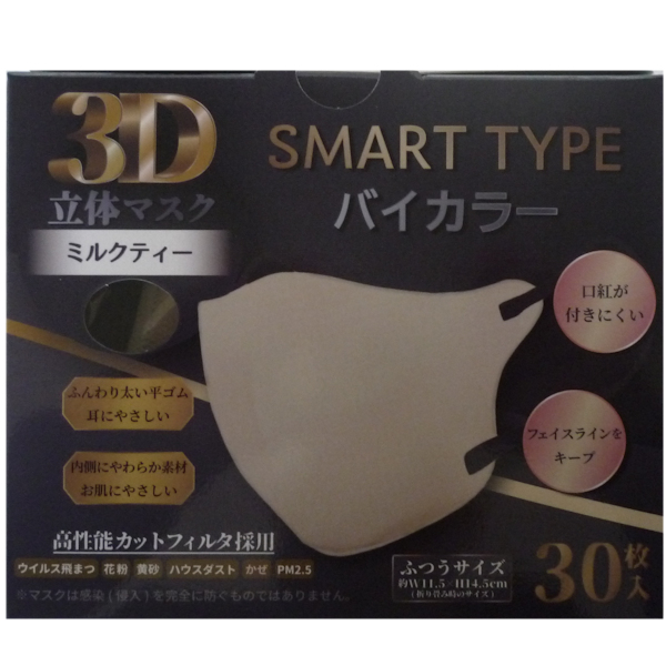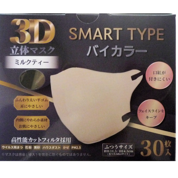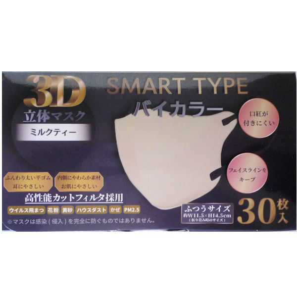3D立体マスク SMART Type バイカラー30枚入 3個セット ふつうサイズ ミルクティ iiもの本舗 送料込み(関東地方限定)同梱不可