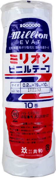 ミリオン ビニルテープ 0.2mmx19mm×10m 10巻 白 ミリオン ビニルテープ 0.2mmx19mm×10m 10巻 白 (4971620441060) 商品情報 ミリオンビニールテープ 10巻 白 電気絶縁用ポリ塩化ビニール粘着テープ サイズ 幅 : 19mm 長さ : 10m 材質 基材 : ポリ塩化ビニルフィルム 粘着材 : ゴム系 総厚 : 0.2mm 特徴 広い用途に対応できる強い粘着力があり、作業性を高める目的で開発された製品です。 JIS規格に合格した品質・性能が海外でも評価されています。 土木・建築・工場・作業場・重電および弱電各企業から一般家庭まで使用されています。 株式会社 共和 Made in Japan 在庫状態 : 在庫有り ¥798(税込) 数量