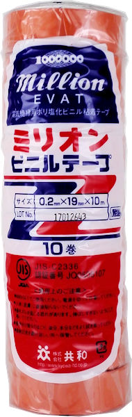 ミリオン ビニルテープ 0.2mmx19mm×10m 10巻 オレンジ ミリオン ビニルテープ 0.2mmx19mm×10m 10巻 オレンジ (4971620443057) 商品情報 ミリオンビニールテープ 10巻 オレンジ 電気絶縁用ポリ塩化ビニール粘着テープ サイズ 幅 : 19mm 長さ : 10m 材質 基材 : ポリ塩化ビニルフィルム 粘着材 : ゴム系 総厚 : 0.2mm 特徴 広い用途に対応できる強い粘着力があり、作業性を高める目的で開発された製品です。 JIS規格に合格した品質・性能が海外でも評価されています。 土木・建築・工場・作業場・重電および弱電各企業から一般家庭まで使用されています。 株式会社 共和 Made in Japan 在庫状態 : 在庫有り ¥798(税込) 数量