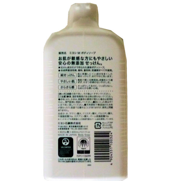 無添加 せっけんボディソープ 白いせっけん 400ml 無添加 せっけんボディソープ 白いせっけん 400ml (4904551100324) 商品情報 お肌が敏感なかたにもやさしい 安心の無添加せっけん 全成分 水、ラウリン酸K、ミリスチン酸K、パルミチン酸K、牛脂脂肪酸Na <石けん類>400ml ミヨシ石鹸株式会社 ●商品のお問い合わせは 〒130-002 東京都墨田区緑3-8-12 お客様相談室 03-3633-6961 在庫状態 : 在庫有り ¥398(税込) 数量