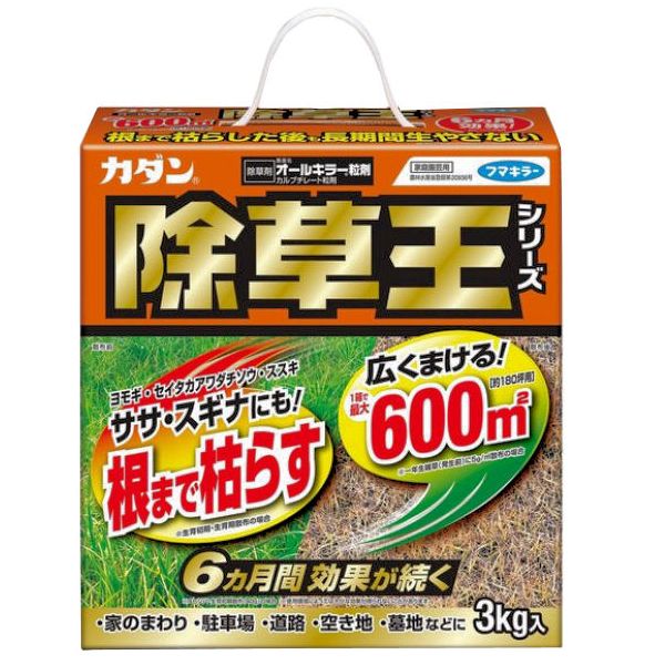 根まで枯らして6ヵ月間生やさない!雑草発生前にまけば予防にも。家まわり、駐車場、道路、空き地、墓地などに。 最大600㎡ (約180坪)用。 [農林水産省登録第20936号]